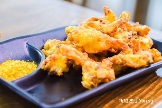 螃蟹是老板自己去港口海鲜市场亲自挑选的,好想多咬两口!撕开一只蟹腿,露出粉嫩的肉,扭一扭,充满着弹性与营养,用秘制的酱汁蘸一下,鲜味十足!