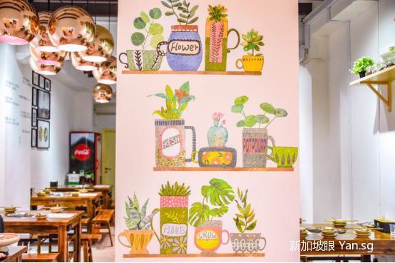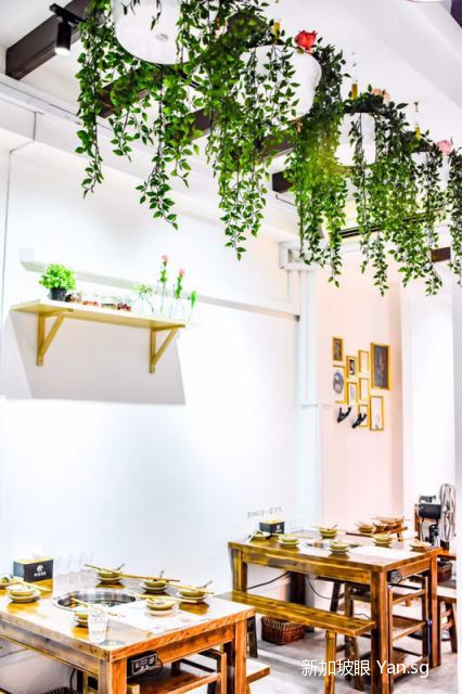 和别家火锅店最不一样的地方,就是锦门大院,从里到外,都是一片清清秀秀。如果说别的火锅是浓妆艳抹盛装出席,那么锦门大院就是小家碧玉聘婷袅娜,没有大红大绿的色彩,只有一阵花香和柔和的搭配颜色。店铺绿植生气盎然,桌椅整整齐齐等着各位客人前来。