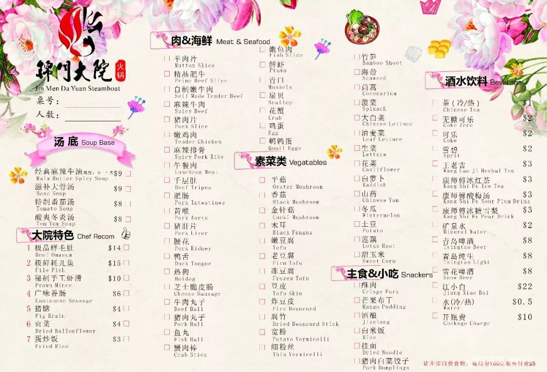 注:* 自助菜单上带价格的锅底、菜品和酒水不包含在自助之内哦