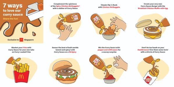 麦当劳还特地发了一张图,告诉你咖喱酱的7种吃法~