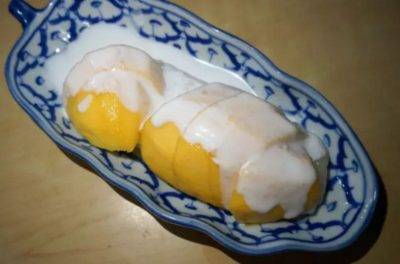 Mango sticky rice served with coconut milk 椰奶芒果糯米饭