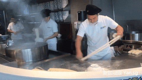 正因如此,今天我们也能在新加坡见证到中国特级拉面师傅这娴熟的手法: