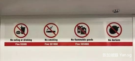 新加坡对城市清洁相当重视,在许多公共区域,也能随处可见禁止饮食的标识。在新加坡地铁上吃东西,还会被罚款$500。