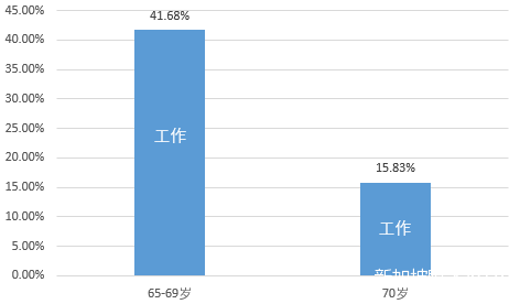 ▲65-69岁的老人中有41.68%的人在工作,70岁以上有15.83%在工作