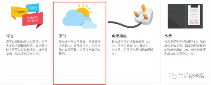 去新加坡首先要看看天气,其实也不太用太在意天气,毕竟这个地方貌似从来没有过台风,而且气候一年四季气温都比较接近,平均温度在23至34℃之间,所以穿衣基本上跟国内夏秋的衣着就可以啦。新加坡旅游局的官方网站会有很多有用的信息提供,出行前可以仔细看一下。