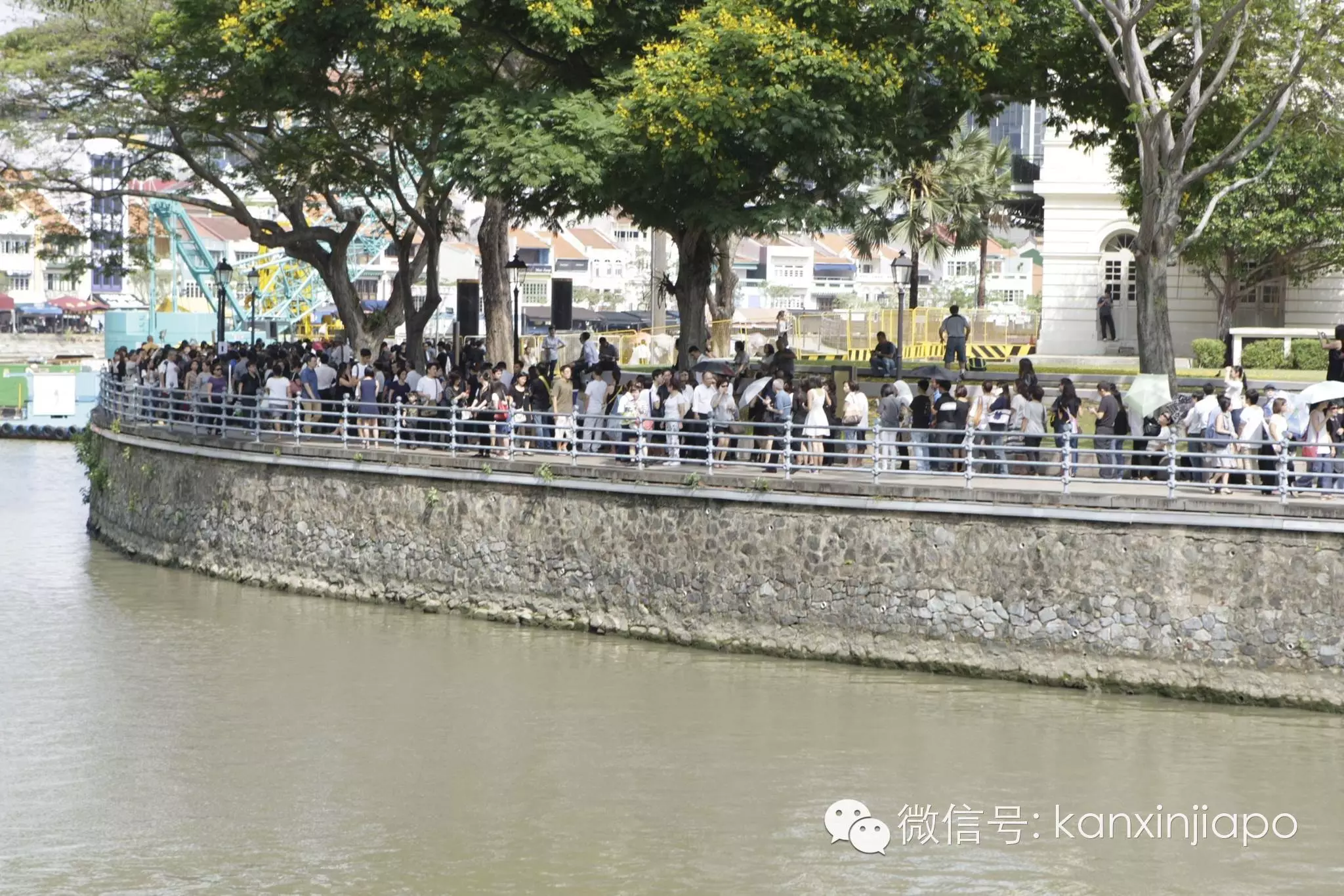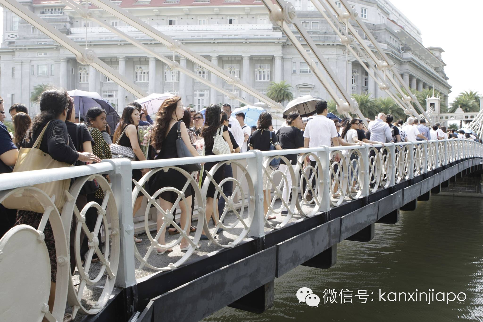 太多的人,立即在国会大厦门口形成长队,越来越多的人,快速延伸到浮尔顿酒店,又沿着新加坡河,折到莱佛士坊,一直延伸,越来越长,延到了克拉码头,甚至到了罗拨申码头。队伍曲折自发成形,布满了CBD甚至市中心。