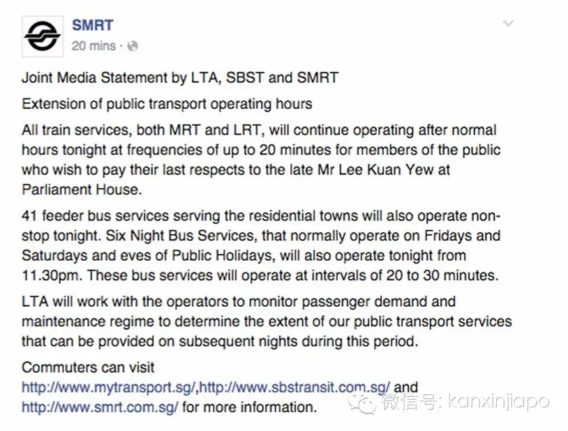 地铁公交将通宵运营,感谢SBS和SMRT。