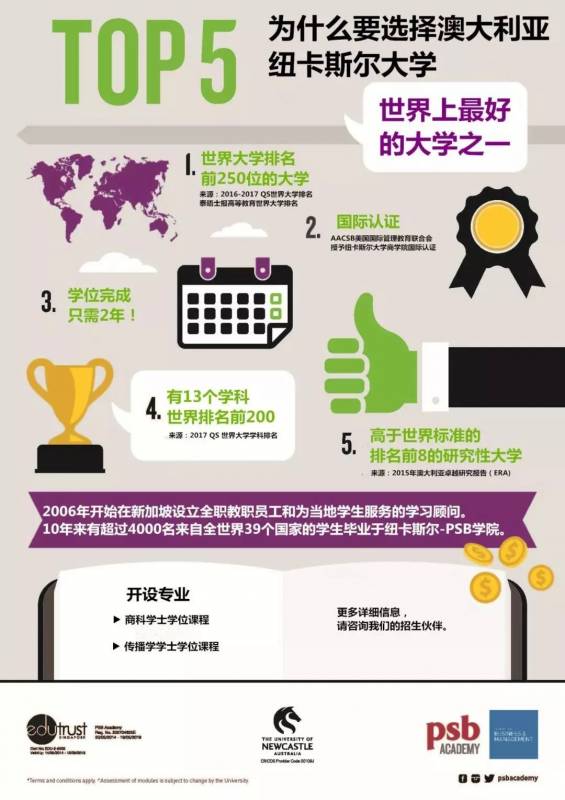 例如:新加坡PSB学院合作院校——澳大利亚纽卡斯尔大学。