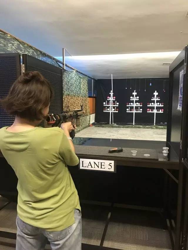 射击共有两种枪可以选择,一种是M4机关枪,另外一个是手枪,手枪是需要充气的,两者都需要添加子弹,枪比我们想象的要沉,我们的男女射手们都很准,点赞。