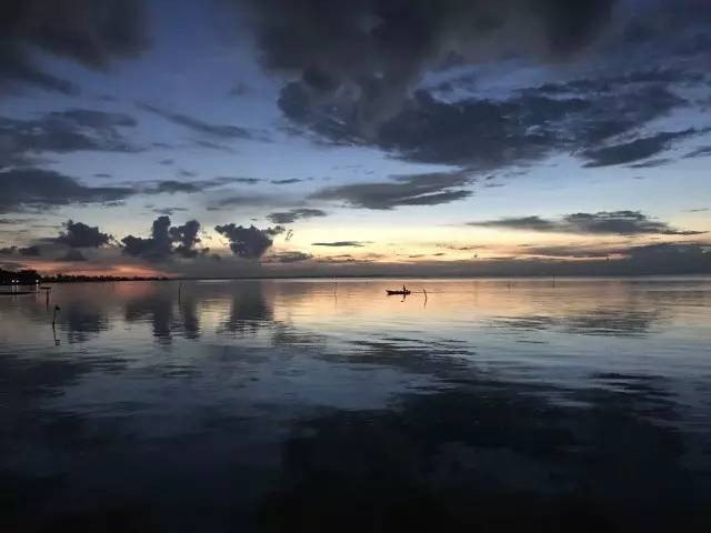 这是从餐厅的露天窗向外看的风景,夕阳西下,出现了一叶扁舟,希望那渔民满载而归。正如我们简单的周末之行一样,充满了欢笑和愉悦。