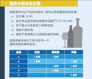 新加坡的烟酒是出了名的税高。根据新加坡《海关法》和《货物服务税法》等法律规定:旅客携带烟草(香烟和雪茄)、酒类、汽油、人造珠宝、汽车/摩托车等商品以空运、陆运、海运任何方式入境新加坡必须进行申报并缴纳关税,违反者一律构成犯罪,面临高额罚款甚至监禁处罚。嚼烟和仿制烟草制品(例如电子烟)都不可以!
