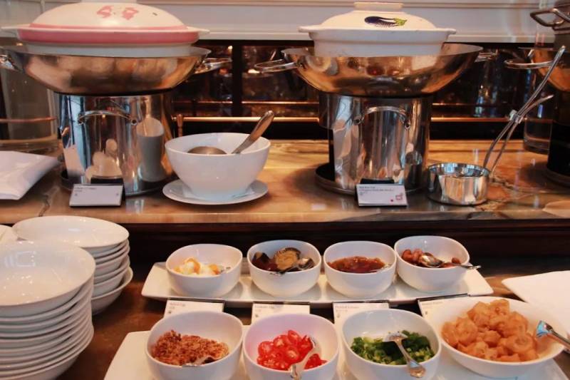 自助区域摆放出来的食物就是一些比较常见的面包、吐司、沙拉和水果,肉骨茶和港式小点算是特色。