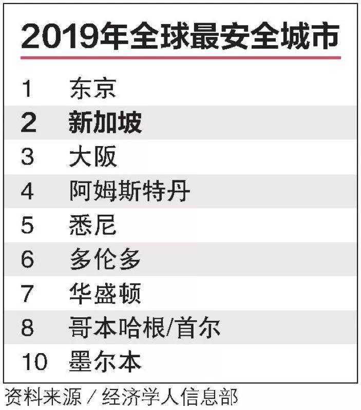 新加坡在个人安全与基础建设安全这两项排名第一;