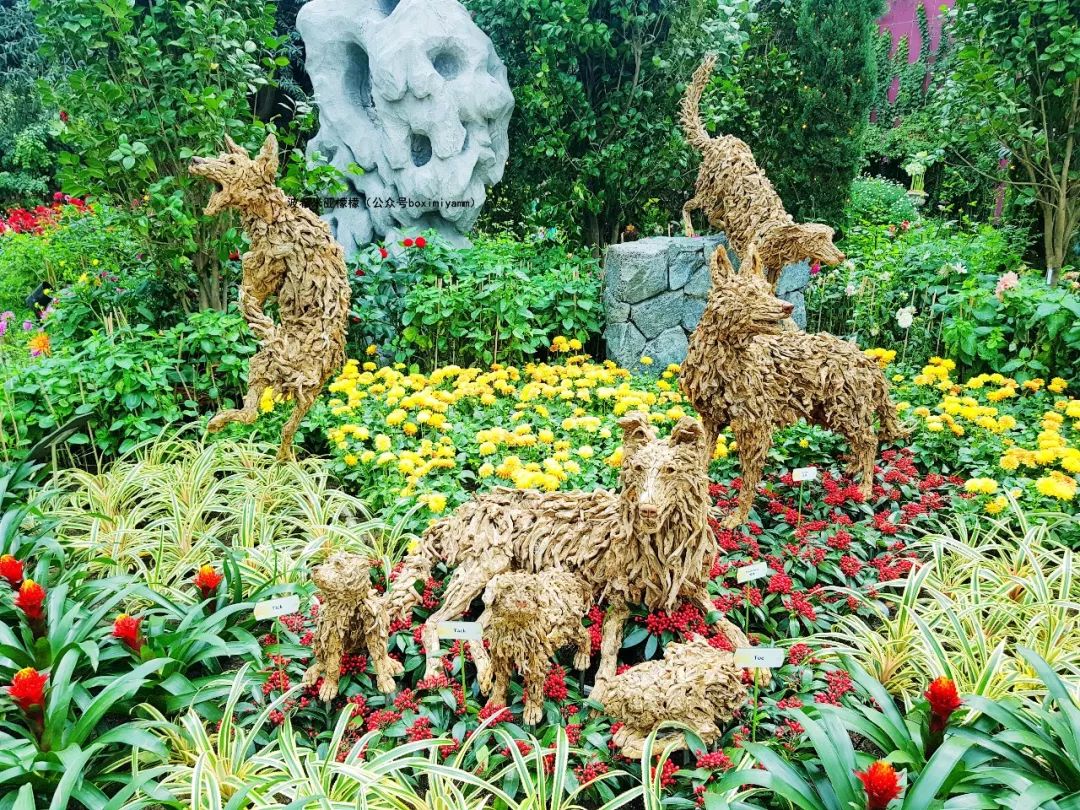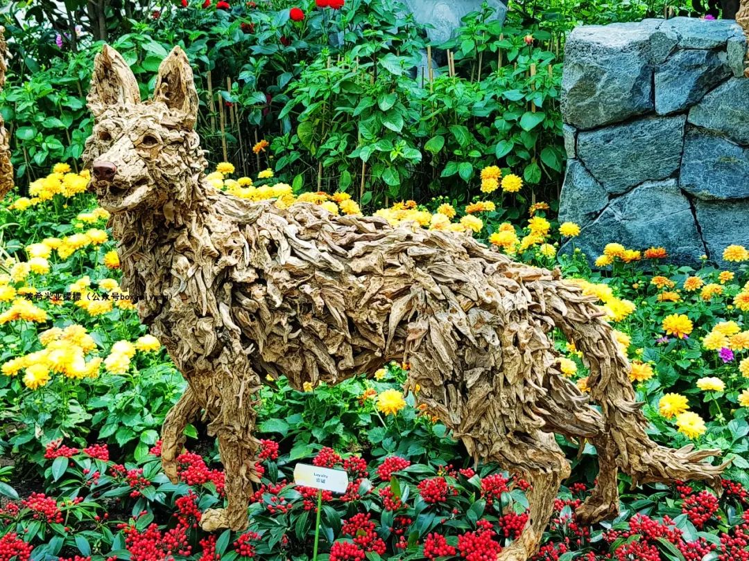 这真是花展的一大亮点!用树皮树根做的狗,看起来就不是很舒服,艺术家很会玩!