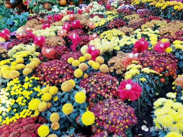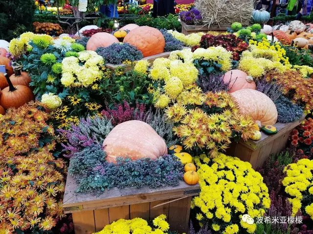 怎么说也是快要过中秋节了,在南瓜堆里点缀些菊花,或者是在菊花丛里丢几颗南瓜,还算和谐共处。