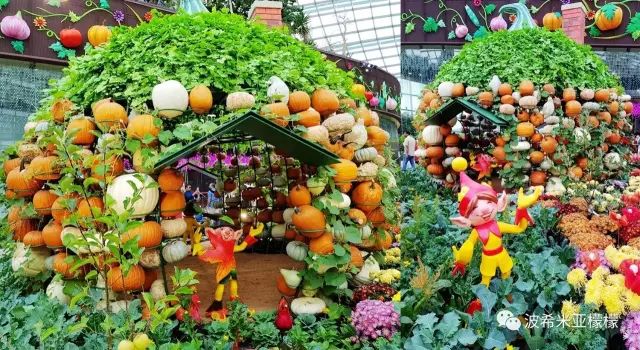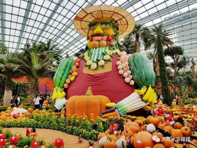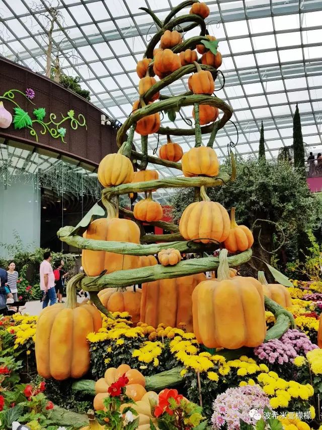 这是一个丰收的季节,总觉得应该配上赵忠祥在动物世界的配音!中秋节和万圣节前后脚的来临了,滨海湾花穹把两个主题融合在一起,组织了一场热闹的南瓜盛宴,但只能看不能吃哦!