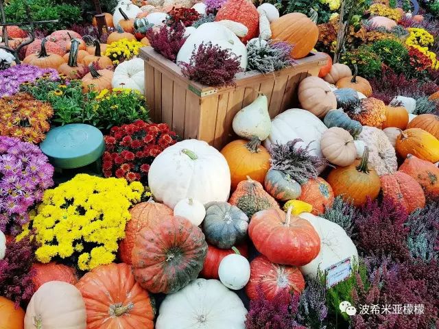 Autumn Harvest从入口处开始,就被大大小小的南瓜装饰起来了,进门往下一看,简直是一派南瓜开会的场面。这次展览的诸多南瓜中,除了有常规品种,还有不少稀有品种,比如北极熊(应该就是全白的南瓜)、条楞,和红疙瘩,大家自己亲自去找一下。