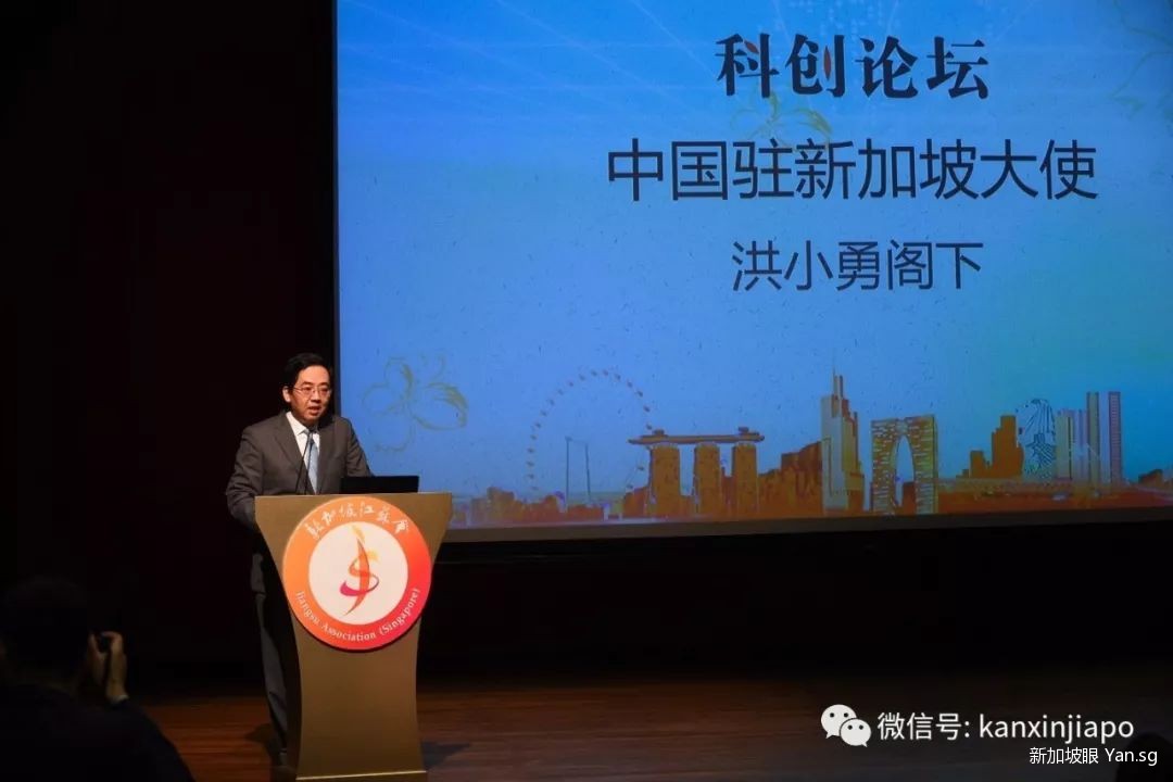 中国驻新加坡大使洪小勇赞扬新加坡江苏会成立以来主办了多项富有意义的活动,成为极富活力的新移民社团。洪大使说,科创论坛邀请了中新杰出专家和企业代表分享经验,要感谢新加坡江苏会为此所做的努力和付出的辛劳。
