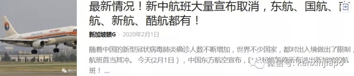 因为这场全球战“疫”,新加坡对中国来的旅客实行入境限制,许多往返于中国和新加坡的航班也停飞、取消,或是减少航班班次。
