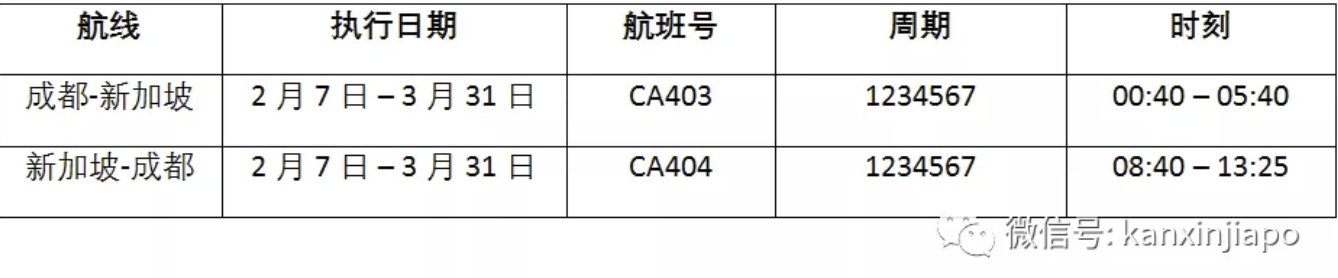 目前,中国国际航空已确定恢复新加坡往返四川成都双流机场的航班,每日一班,每班264个座位。