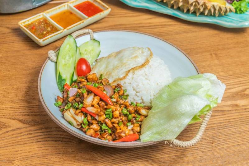 切碎的塔抛叶散发的特殊香气更为浓烈,比九层塔更辛辣,却也多了一分清香。与肉沫一起搭配,可以吃下一整碗米饭,果然下饭菜不分国界。