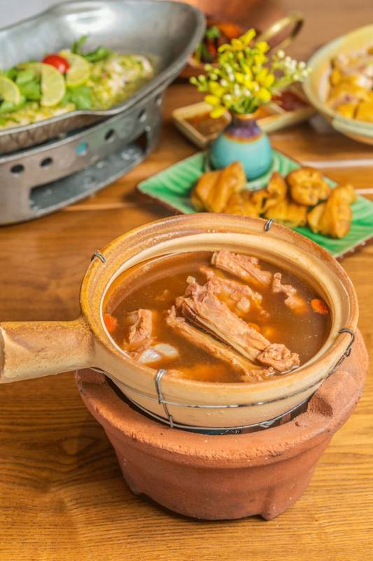 名为“肉骨茶”,却是一碗滋味浓厚的养生汤。作为精选的黑猪排骨取代普通猪肉,肉质滑嫩也不会失去韧性,与多种药材一起慢火细熬,使排骨中的精华与中药互相交融,香气入肉三分。