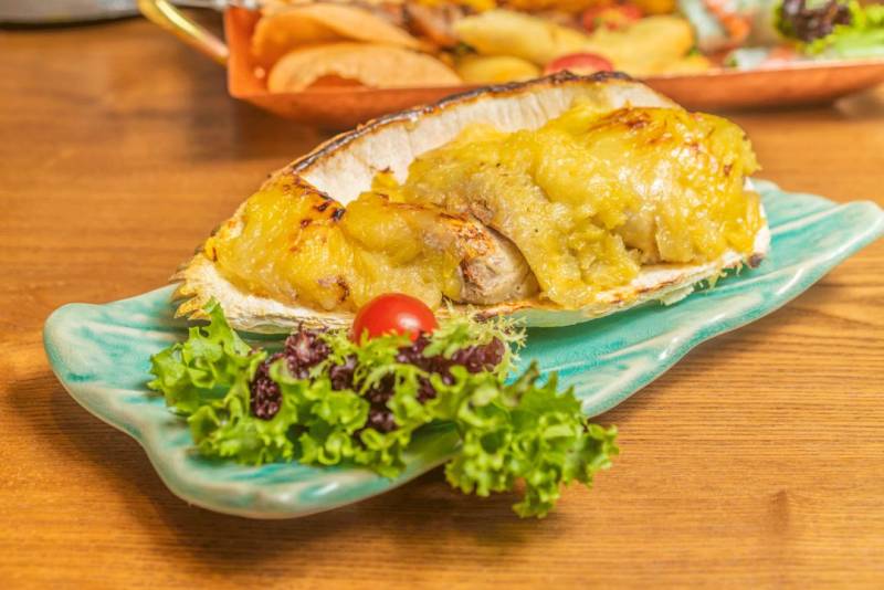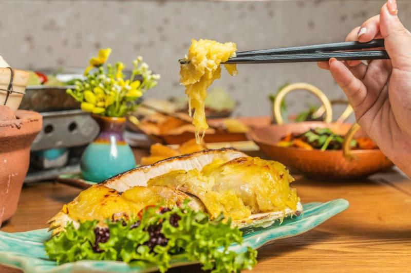 榴梿肉本身就细腻甜软,经过烤制后,更散发出浓郁甜香,夹起一块焦黄色的饱满果肉,趁热送进嘴中,绵滑的口感瞬间让人陷入惊喜的甜蜜幻境。