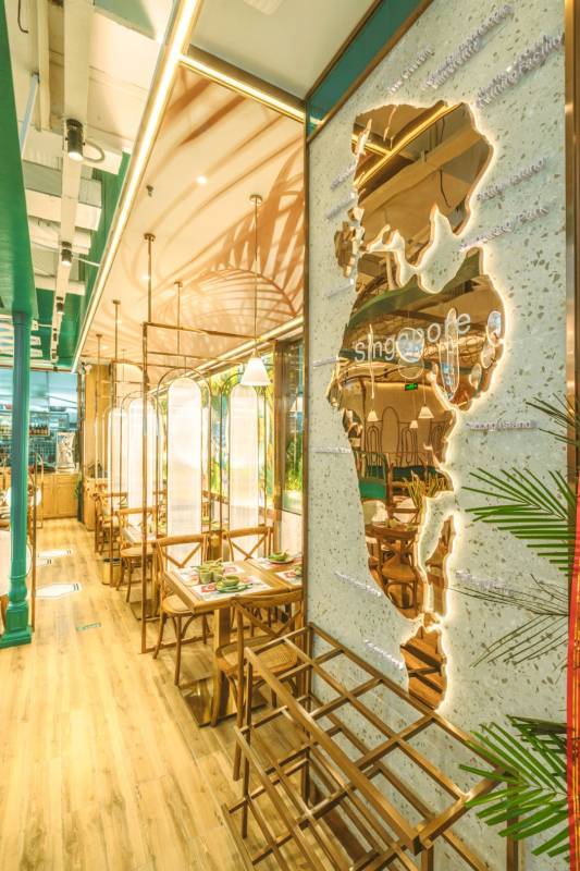 木质桌椅与虎皮兰营造的热带雨林气息使人身临其境,墙壁上的彩绘向我们展示著一个物产丰富,善用香料的花园城市。踏入狮城荟的店内,就已与远在三千多公里外的新加坡有了微妙的联系。