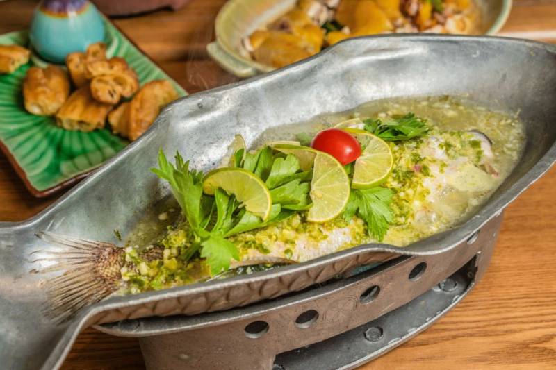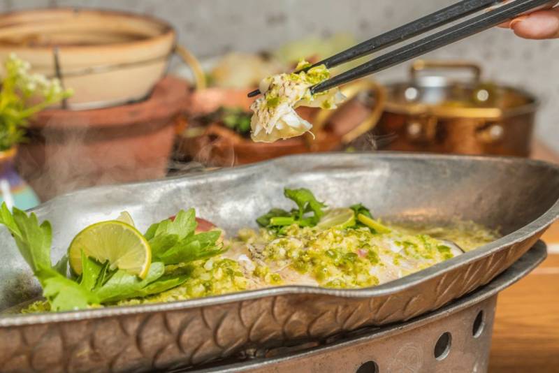 青柠自带清新格调,与鲈鱼的鲜活组成最佳cp,用筷子拈取鲜嫩鱼肉,入口后却惊觉事情没有这么简单,酸甜味道激发食欲,而香叶榨汁后的辛香调味则丰盈了整道菜的层次。