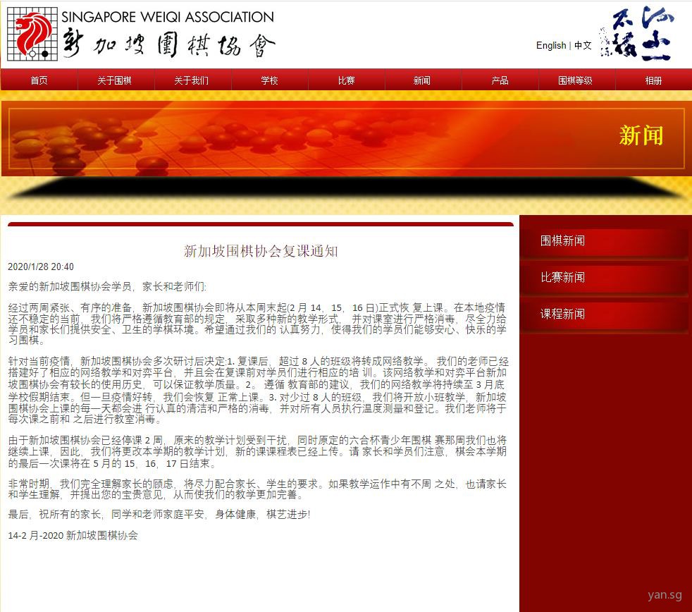 在新加坡本地初次出现冠状病毒疫情之时,新加坡围棋协会理事会毅然关闭了武吉士和碧山两处会所,停止所有课堂教学,对课室进行严格消毒,以保证老师和学生们的健康安全。但是,随着时间的推移,疫情并没有很快结束,而前来新加坡围棋协会学棋的几百个学员多是孩子,他们正处于棋艺增长的黄金时间,长时间的停止训练必然导致围棋感觉的陌生和棋艺退步,极有可能由此耽误了学棋的前景,特别是国家少年队的队员们,肩负着新加坡围棋的未来,他们的训练更是须臾耽误不得。在当前本地的疫情没有可能短时间内终止的情况下,为了不耽误小学员们的学习,新加坡围棋协会会长陈丁川带领理事会积极想办法,开发技术,发展网络教学,推动教学模式的转换。