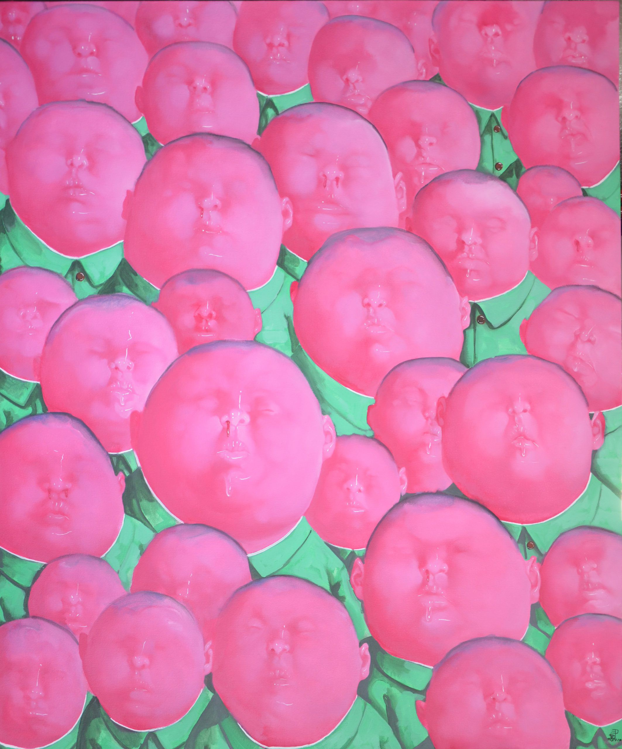To some extent, Yi Kun’s art concept is influenced by some political pop trend of thoughts such as the irony and humor of the art language. However, these are only influences. Fundamentally, Yi Kun’s art is still different from political pop. One of the differences lies in the fact that political pop has in it socialized flirtation and interpretation of political ideology, which Yi Kun’s works do not have. What they do have is children’s joy or in other words the comic book spirit that is gradually being lost in the race with time. In fact, before the “Heroes” series, Yi Kun had started experimenting with a number of artistic styles such as boys and girls playing together, and video camera lens being boosted by soap bubbles etc. The youth motifs that these styles have at the very outset reflected the artistic pursuit of the artist: he wanted no social critique but rather the reconnaissance of the youth vigor and of the pleasures of childhood. That was in fact what he wanted to achieve through his “Heroes” series. The reason for his using the perspectives of comic books to reorganize his paintings was to deprive the heroic, severe images that are typical of heroes of their revolutionary background, and to reinvigorate them with a playful atmosphere like that of a game. The reason does not stem from his admiration for the heroes of the past, rather it is to recall the spirit of the heroic era, or in practical terms to revisit his own childhood.