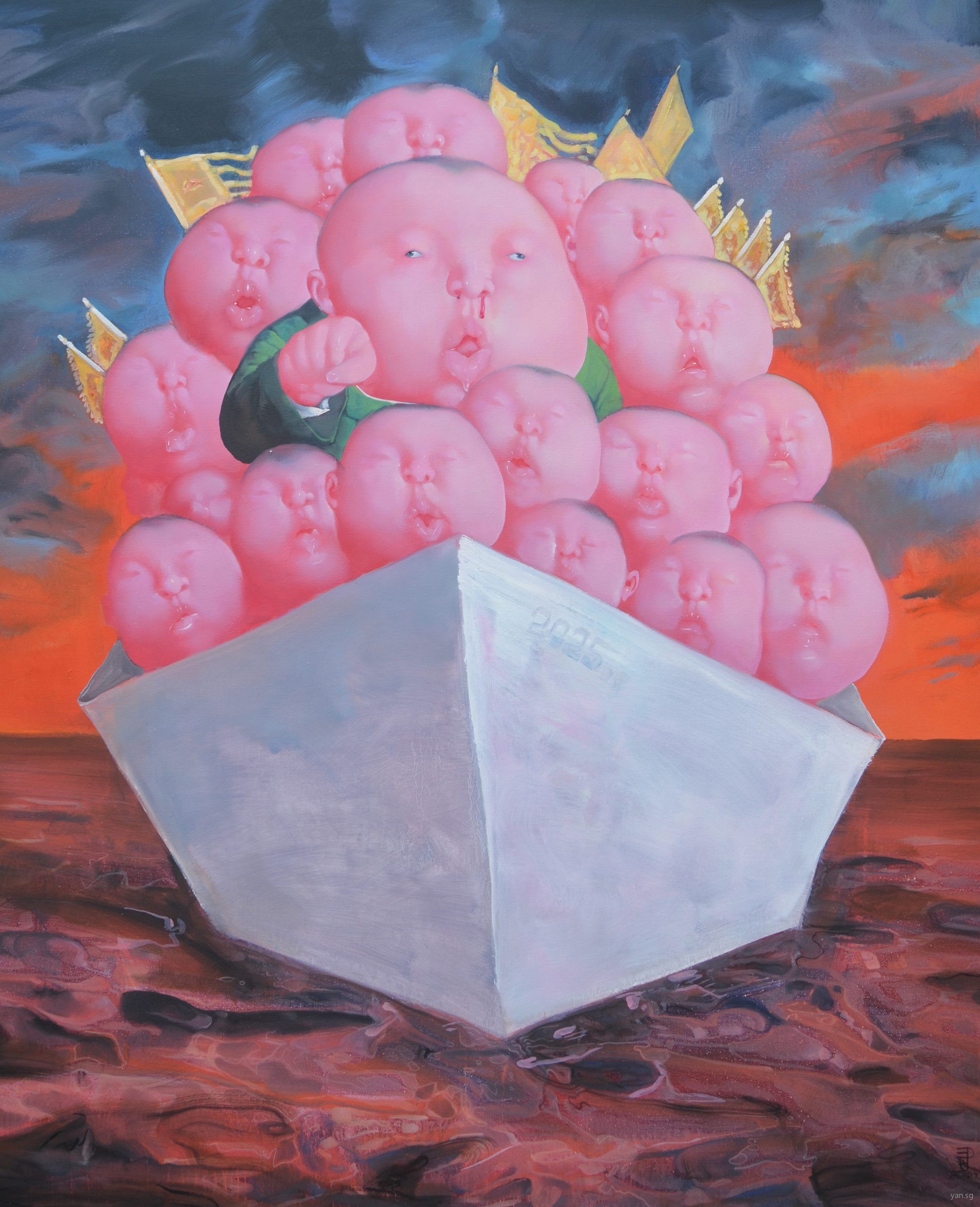 而在现代高科技和商业化时代,他们被描绘成中国宝贝的过程本身就带有讽刺和荒谬的色彩,这些作品实际上反映了尹坤精神上无法“成长”的本性,他也试图以批判的态度对待现代现实和过度商业化。