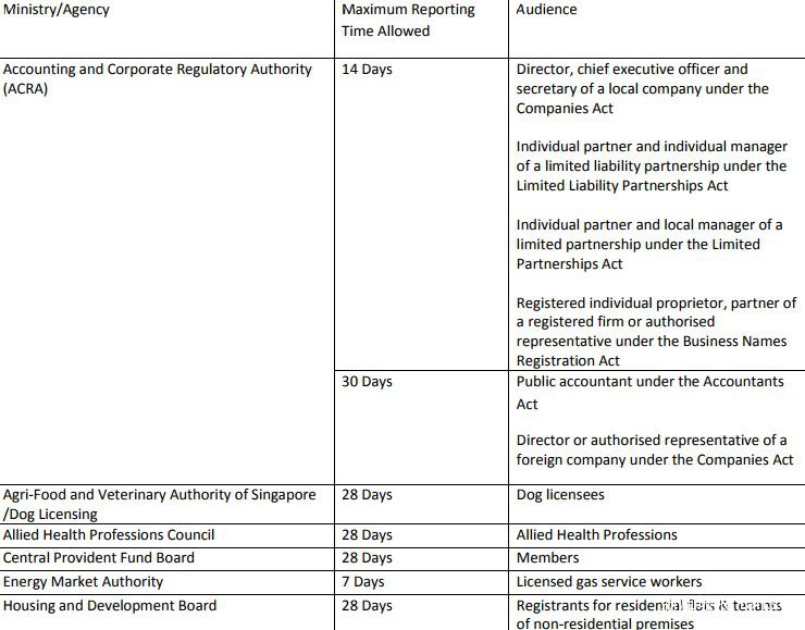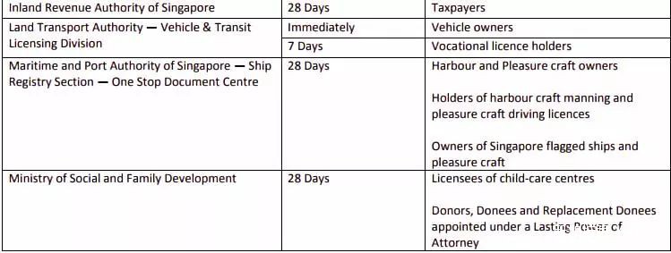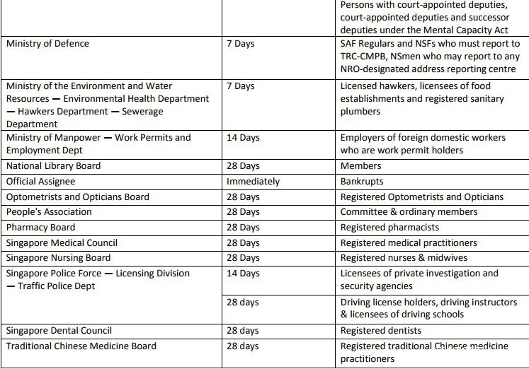 注意:公民和PR需要在换住房后的28天内完成更换地址的操作,有些政府机构则需要7天或者14天内完成操作,详情如下图。