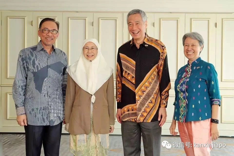(安华夫妇与新加坡总理李显龙夫妇合影)