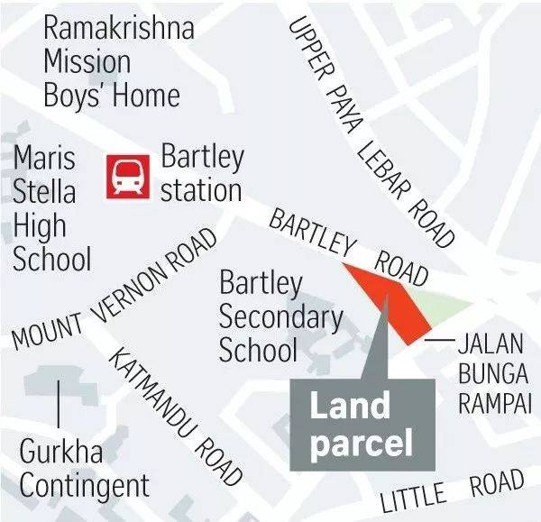 这次高力国际新加坡研究主管指出,这幅地的面积是今年下半年GSL项目中最小的住宅用地。这里紧邻一个小公园,和巴特礼高架桥。