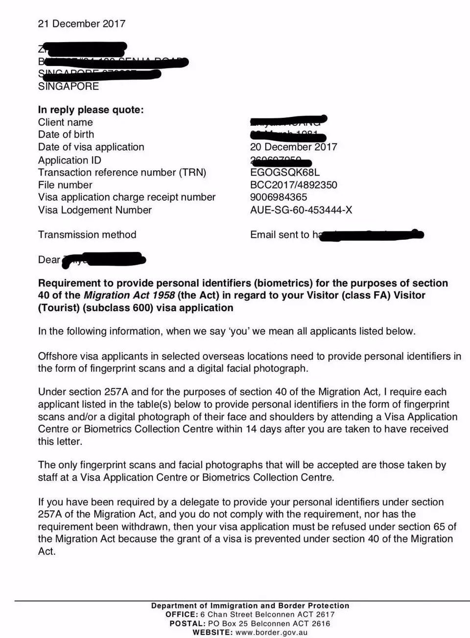 80 Robinson – Opposite MYP PlazaMAC Parking – Opposite Kek Seng Towers最后的经验总结就是:如果提供完整的必需资料特别是公司工作证明,尽量提供他们所需要知道显示在申请表格内所需的内容,尽可能提供更多的辅助资料,那么澳洲签证就几乎没有问题。