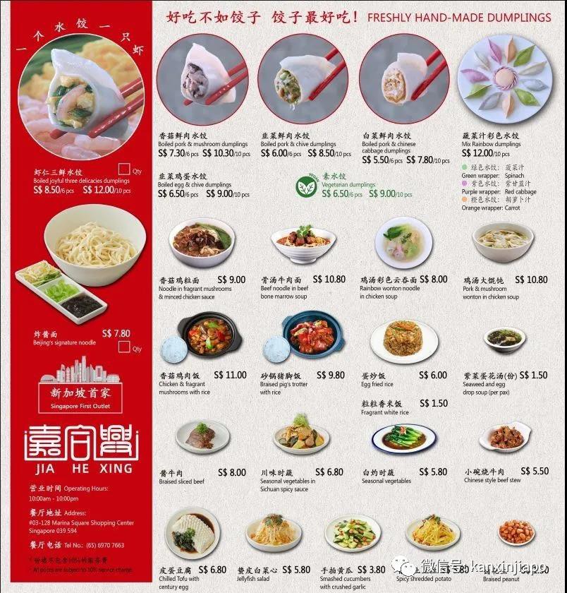 新加坡嘉合兴外卖(饺子/各类面/小菜)