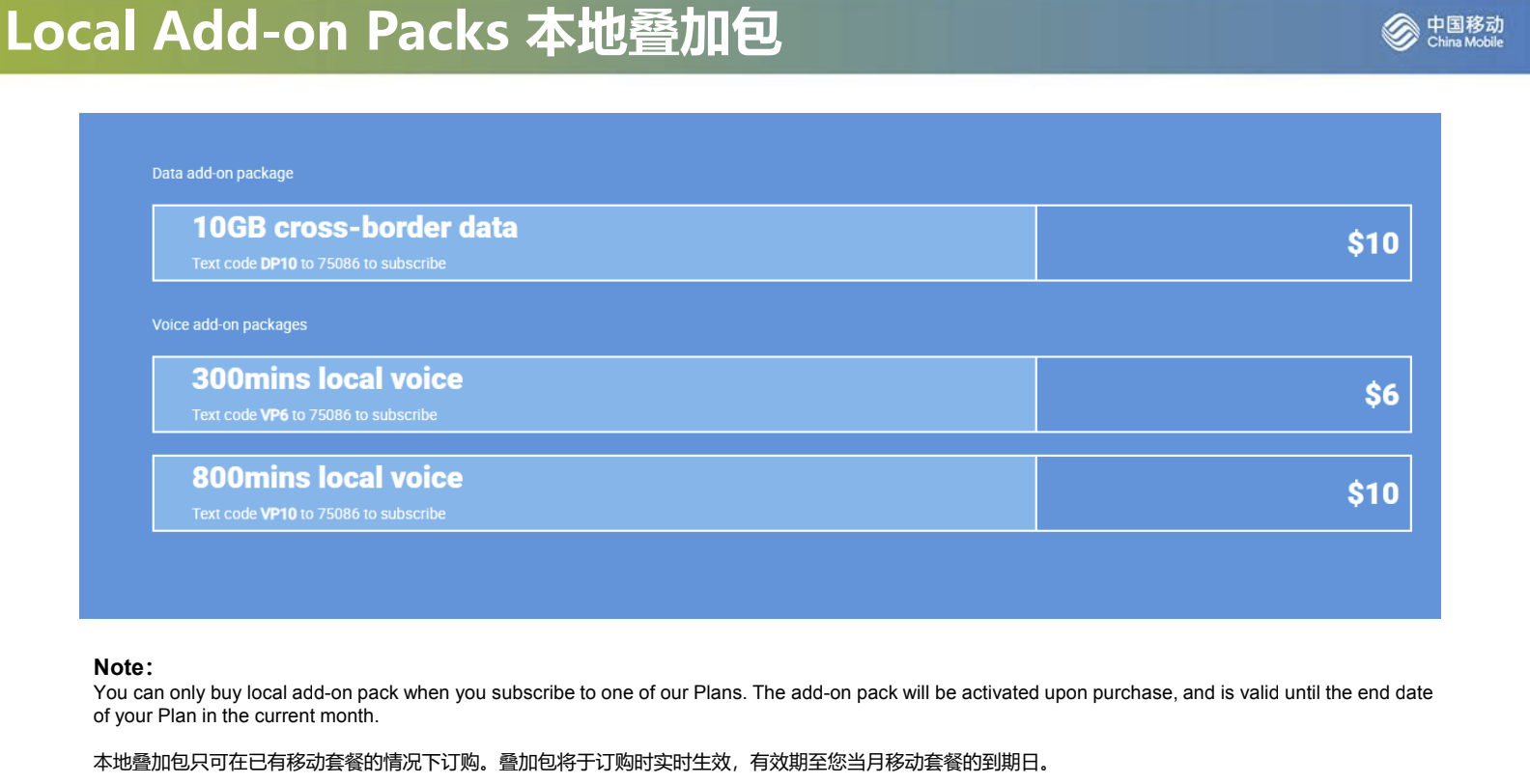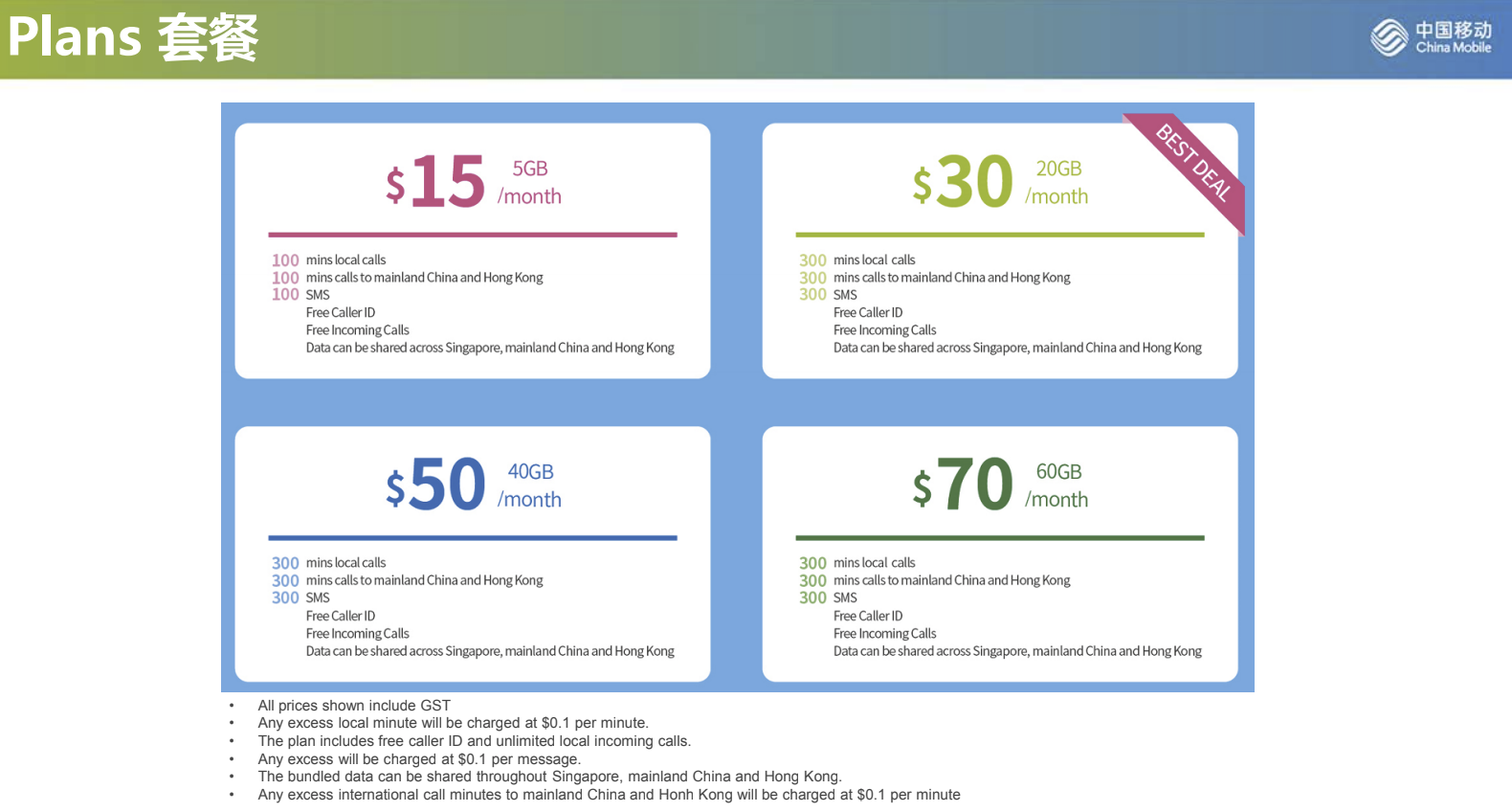 Subscribers can make crystal clear calls to mainland China and Hong Kong with bundled IDD minutes. Excess minutes are charged at local rates.Cross-border data – Bundled data can be shared across Singapore, mainland China and Hong Kong.Existing China Mobile subscribers can get SMS on their Chinese number forwarded to their CMLink Singapore number, through the CM Numbers Link service. This allows customers to access Chinese websites and services that require OTP sent to their China mobile number. CM Numbers Link service is free until 31 December 2020.Plans come with free Call Number Display, free incoming calls and free bundled SMS.