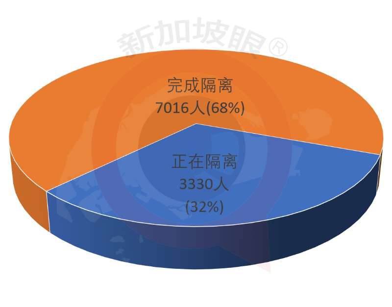 新加坡完成隔离者有7016人,占总隔离数68%,正在隔离者3330人,占32%。