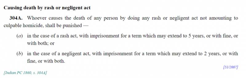 这名男子被逮捕后将立刻被控上法庭。根据法律规定,因鲁莽行为致他人死亡的罪名一旦成立,男子可面对最长五年监禁或罚款,或两者兼施。