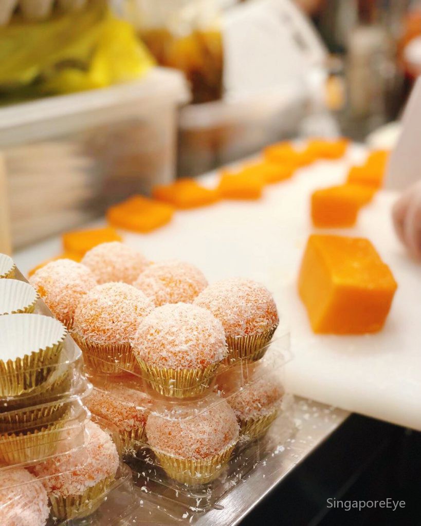 糯米糍皮Q弹又充满韧劲,里面夹着新鲜芒果丁,给您带来清甜紧致的口感。外皮既有芒果的甜蜜也有椰子的清香,内馅的还有芒果肉的酸酸甜甜,对比强烈,口感丰富,绝美享受!