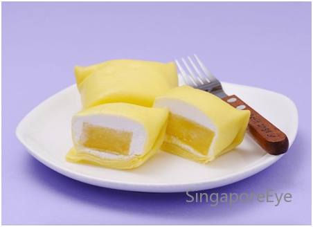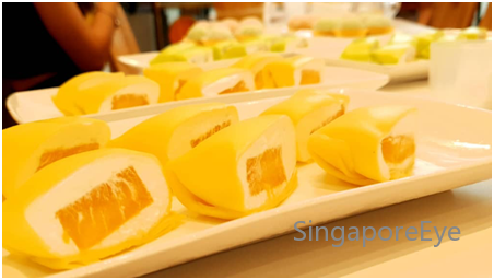 芒果班戟(MANGO PANCAKE),它有着可爱的外形,还有着蛋香味和Q劲十足的表皮,更更重要的是,里面有着大块的清香芒果丁,香浓的奶油,三者合一,一口咬下去,真是享受。
