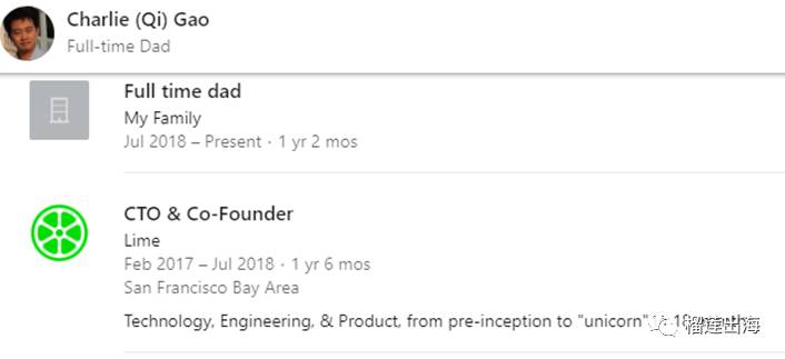 Lime创始团队感觉很有意思,小霸王挖了一下资料,发现其中一位创始人已经成功exit,现在是全职奶爸,这是什么神仙生活()。