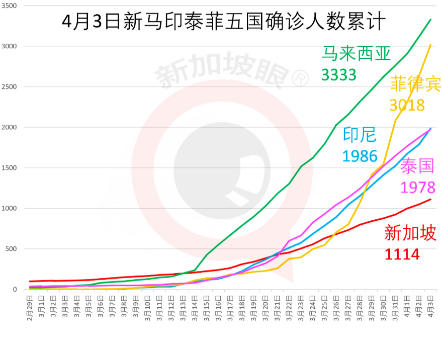 邻国方面,马来西亚今天新增217例,累计3333例。印尼新增196例,累计1986例。菲律宾今增385例,累计3018例。
