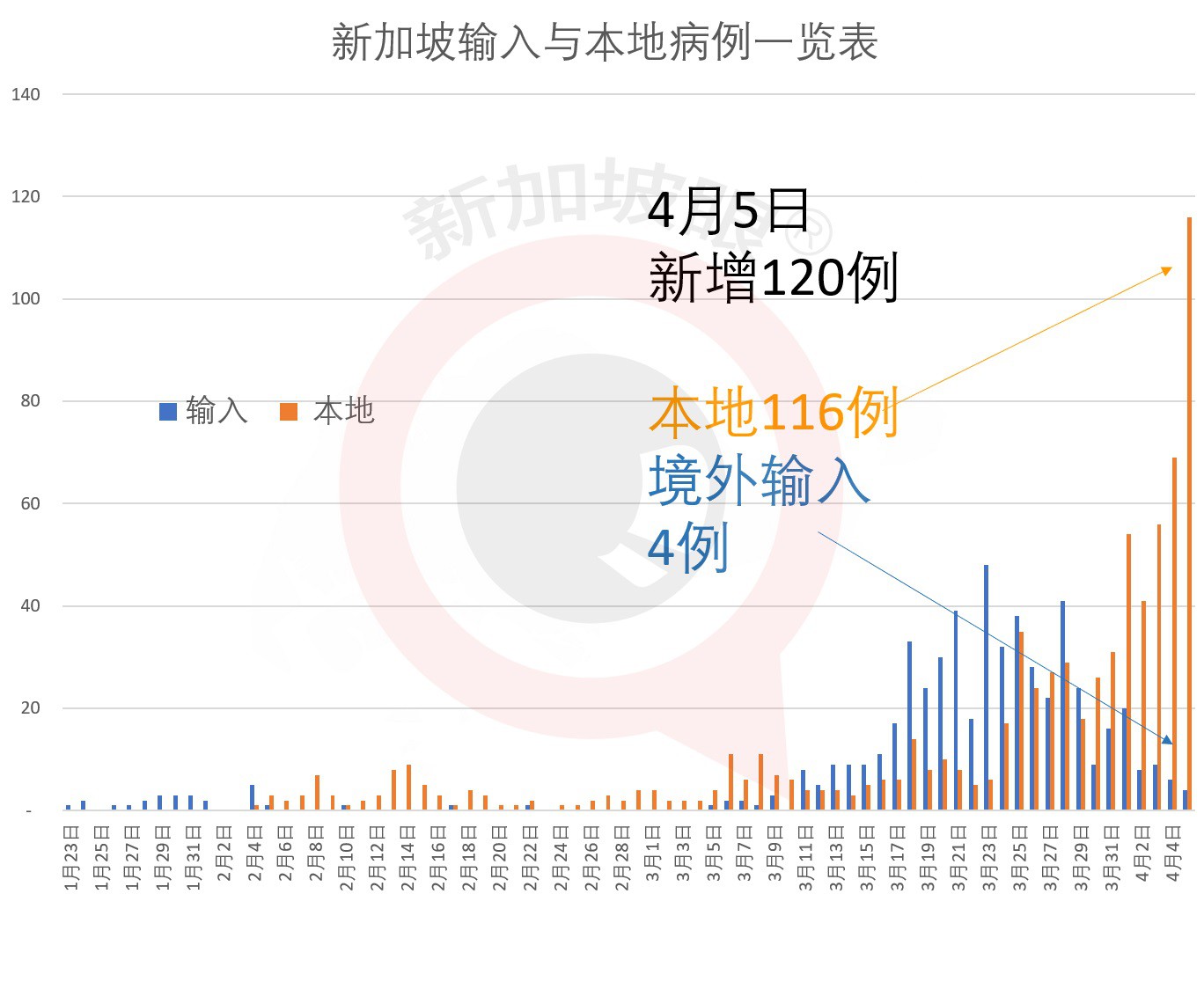 今日(4月5日)新加坡当日新增120例新冠肺炎确诊病例,包括4例输入型病例,116例本地感染病例。里面有其中76人是持探访准证者,其中32人是客工。目前新加坡累计确诊1309例。