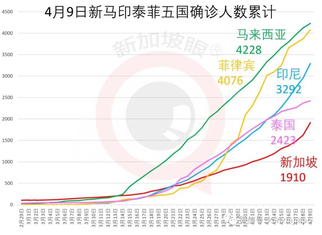 邻国方面,马来西亚今天新增109例,累计4228例。印尼新增337例,累计3292例。菲律宾今增206例,累计4076例。泰国新增54例,累计2423例。