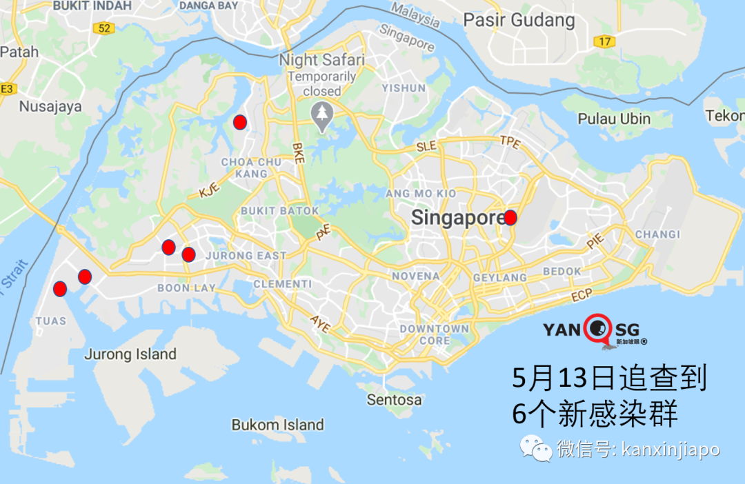 追查出6个新感染群5月13日,新加坡追查到6个新感染群,都在工业区:
