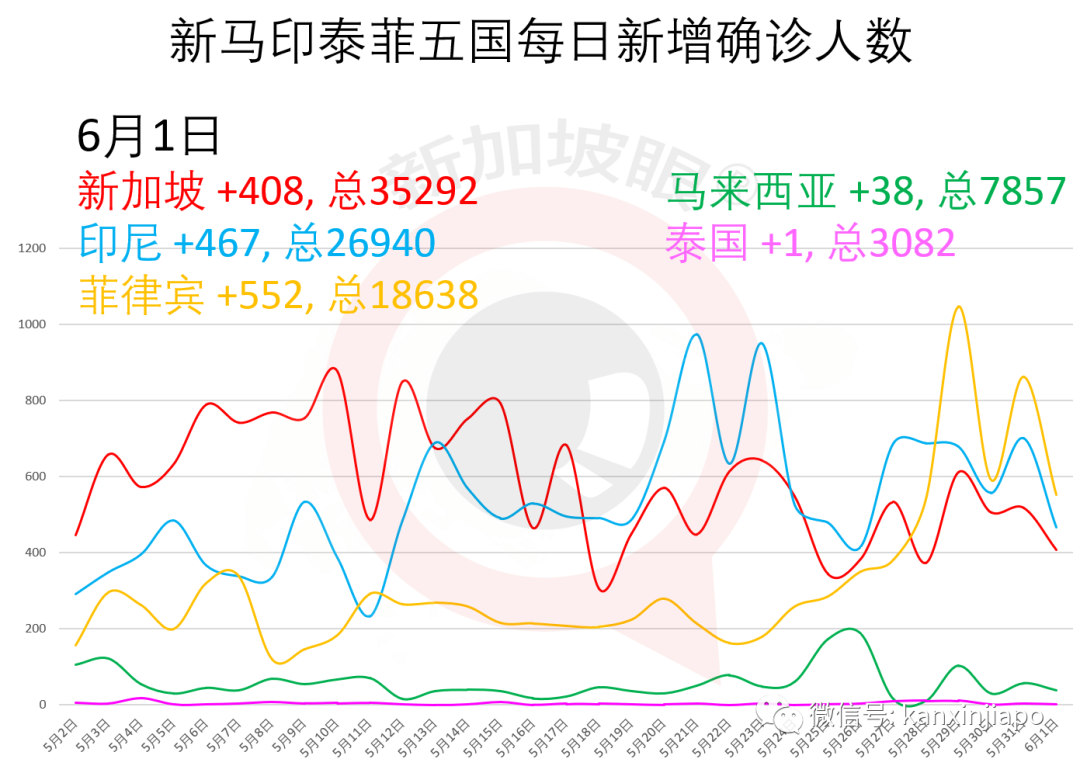 邻国疫情6月1日,印尼新增467例(累计26940例);菲律宾新增552例(累计18638例);马来西亚新增38例(累计7857例);泰国新增1例(累计3082例)。