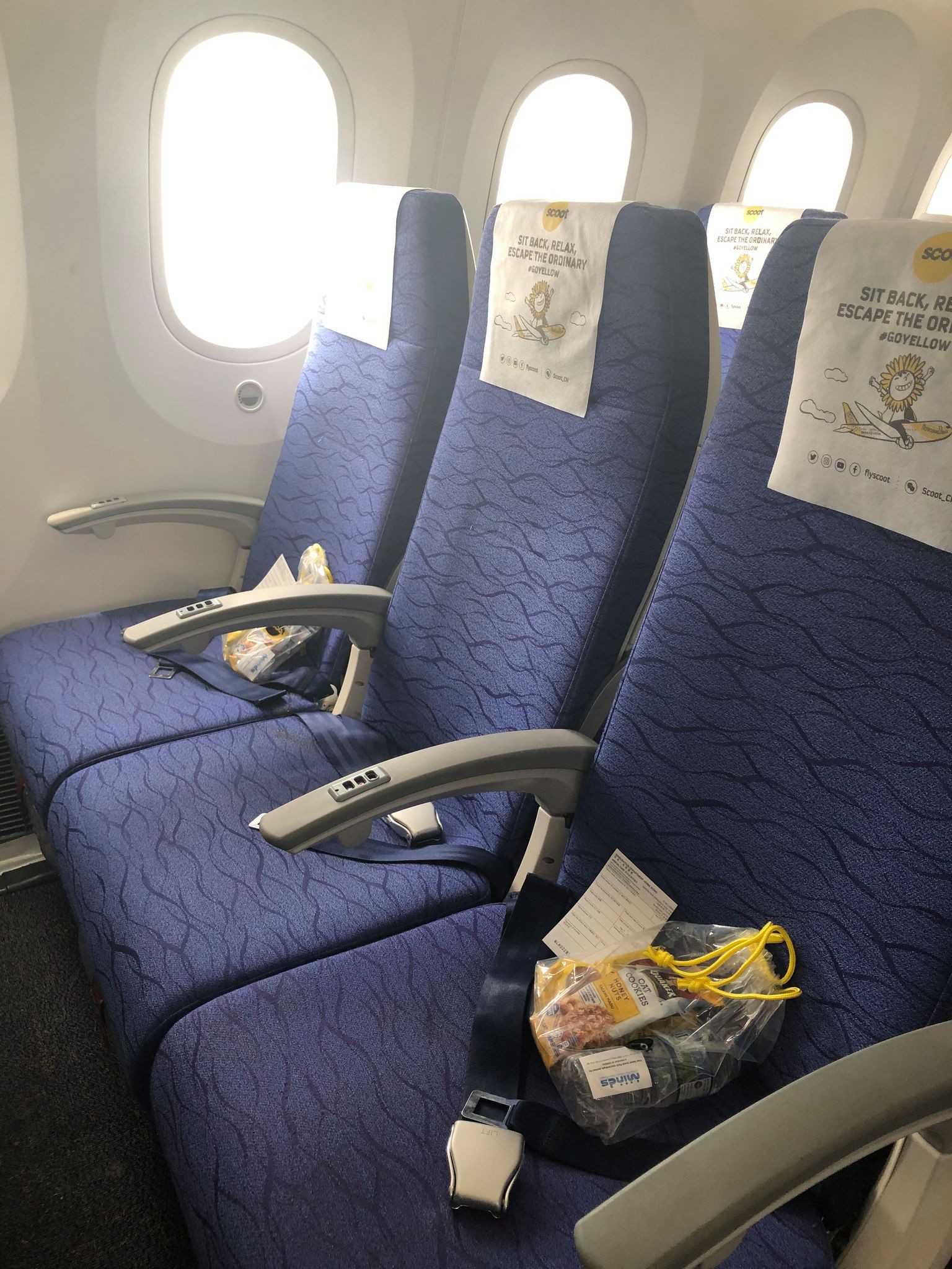 Seatback literature such as the Scoot Café Menu, the Scoot in-flight magazine and Scootalogue duty-free shopping catalogue have been removed from seat pockets to reduce surface contact. The safety card and airsick bag will remain.