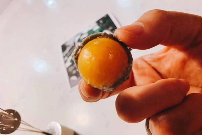 咬开巧克力脆皮,里面是橙子味道的sobert沙冰,惊喜连连!